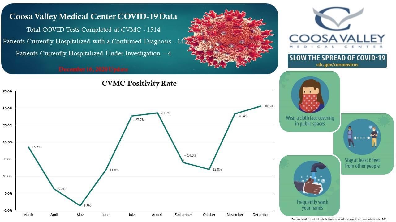 SYLACAUGA, Ala. – Coosa Valley Medical Center has updated its COVID-19 numbers.