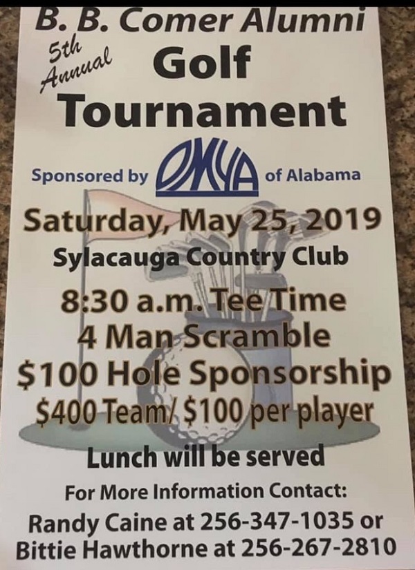 SYLACAUGA, Ala. – The 5th Annual B.B. Comer Alumni Golf Tournament is set for Saturday, May 25 at the Sylacauga Country Club.