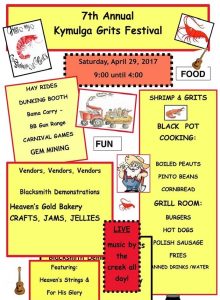 Live music will also be on display throughout the day, and there could not be a Kymulga Grits Festival without shrimp and grits and more food to be on site.