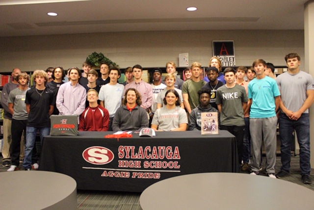Thompson, surrounded by teammates, coaches and family, inked the deal in the Sylacauga High School Media Center.