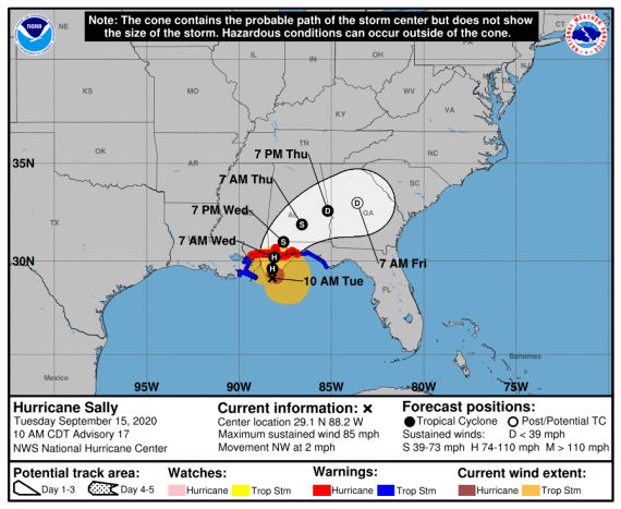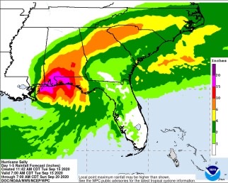 “We are looking at record flooding – perhaps breaking historic levels – and with rising water comes a greater risk for loss of property and life,” she said. “Sally has the potential to inflict major damage along our Gulf Coast and even further northward as it moves.”