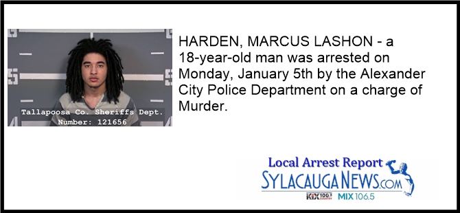 19-year-old Marcus Harden of Eclectic was arrested Monday, Jan. 5 and charged with murder. A second suspect, Roderick Hicks Jr., was also arrested Monday and charged with First Degree Hindering Prosecution in this case.