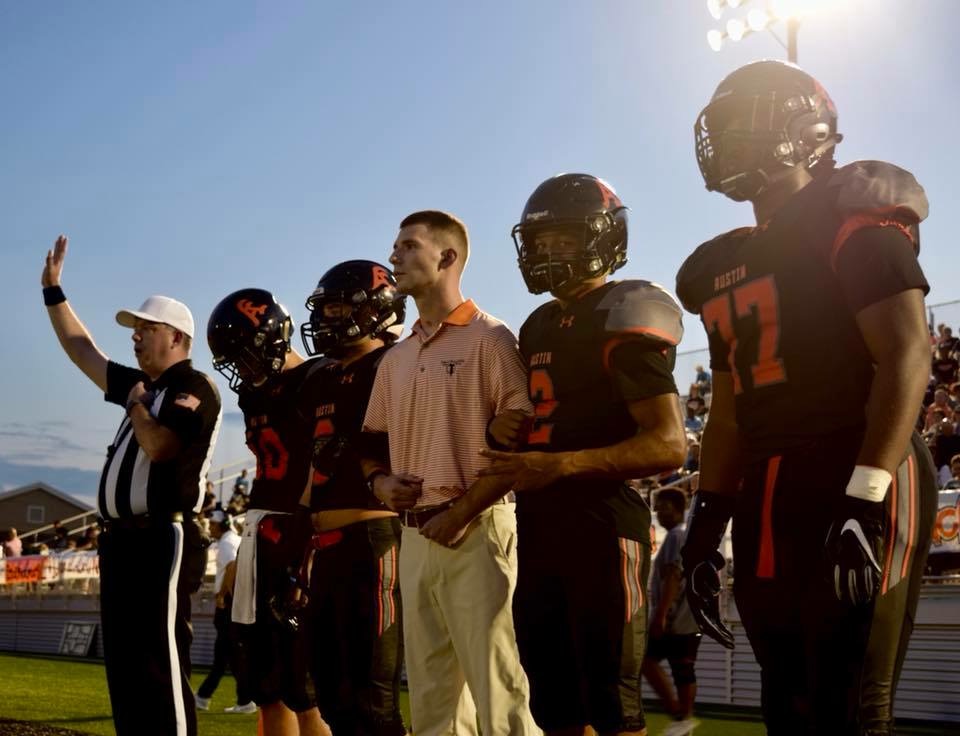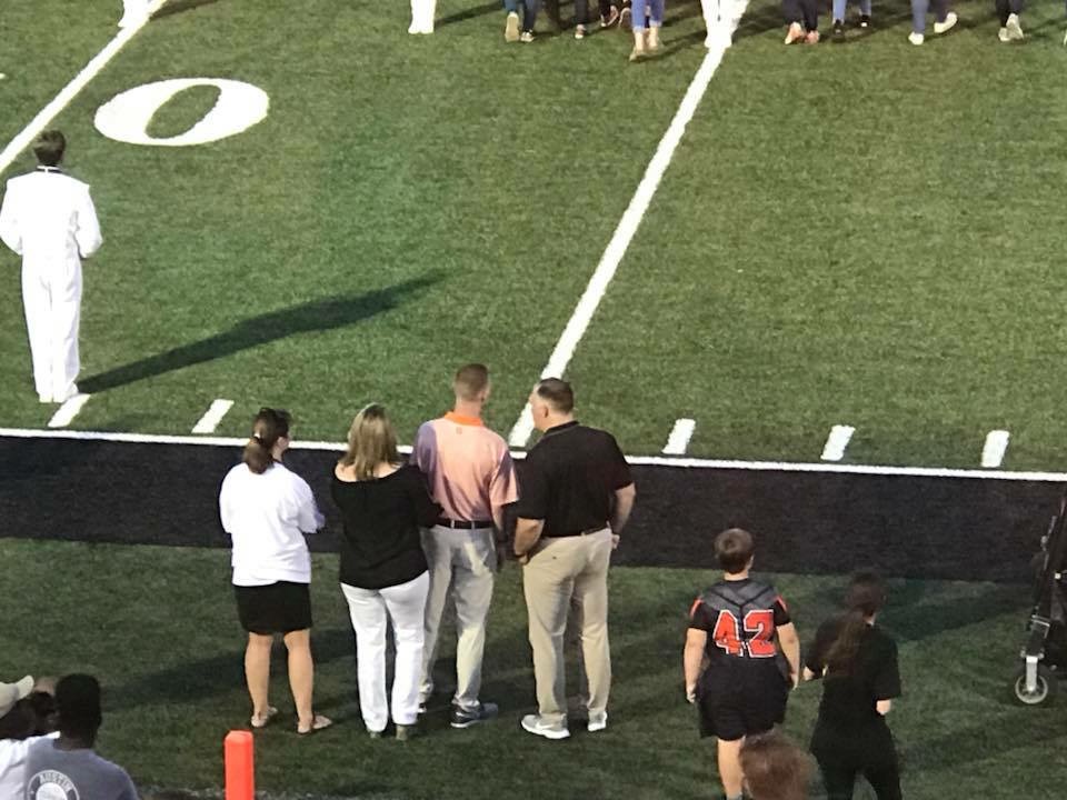 On Friday, Burton was honored at Decatur’s Austin High School football game where he formerly played defensive line for the Black Bears. He was named an honorary captain with the team and was honored during pregame where he joined the other team captains for the coin toss just before the game started. Players locked arms with Burton to assist him to midfield for the coin toss.