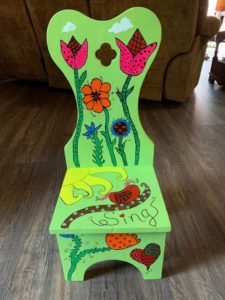 Old chairs have been given new life in an array of creative styles from whimsical to elegant by artists and friends in the community in support of the Museum. Look at just some of the beautiful chairs up for bid and there is a lot more.