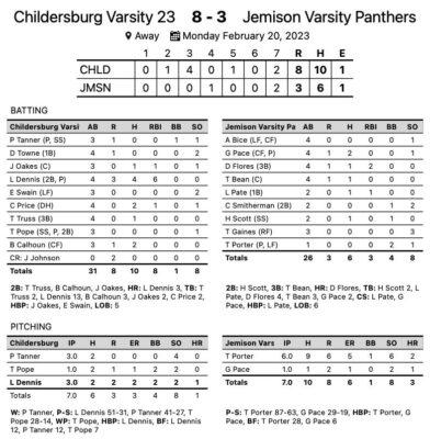 JEMISON, Ala. – The Childersburg Tigers baseball team captured their first win of the season on the diamond as they went on the road and defeated a Class 5A Jemison Panthers team by the score of 8-3.