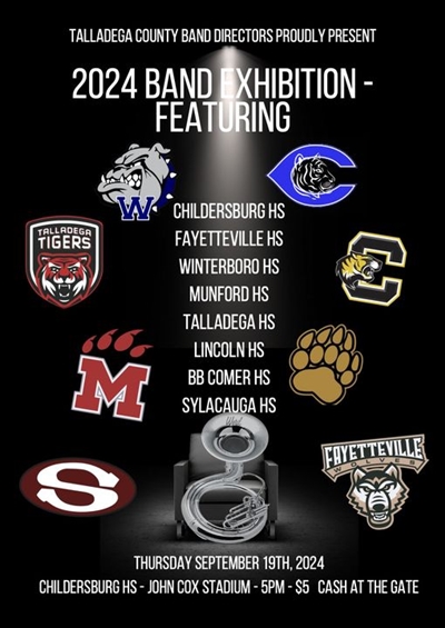 CHILDERSBURG, Ala. – On Thursday, Sept. 19, Childersburg High School will be welcoming marching bands from across the county to the annual Talladega County Marching Band Exhibition.