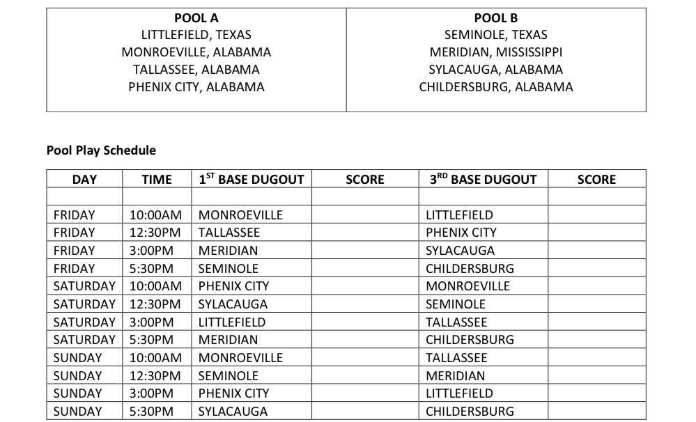 Here is a list of teams participating in the tournament, along with a pool play schedule.