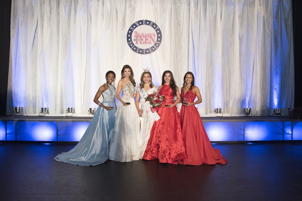 With the title, Miss McMurray received a four-year renewable full tuition scholarship to Auburn University; four-year renewable full tuition scholarship to the University of Montevallo; four-year renewable $10,000 Scholarship to Troy University – Troy Campus; four-year renewable full tuition scholarship and freshman housing to the University of Alabama; four-year renewable full tuition scholarship to Jacksonville State University; four-year renewable full tuition scholarship to the University of North Alabama; one-year renewable tuition scholarship to Wallace State Community College – Hanceville; $5,000 cash scholarship (to be paid to her college or university); official Miss Alabama’s Outstanding Teen crown, trophy and pin; a week at the Miss Alabama Pageant in June; arm bouquet of flowers; One to One Personal Fitness package in preparation for the national pageant; all expenses paid and wardrobe assistance to the Miss America’s Outstanding Teen Pageant to be held in Orlando, Florida in July; and a personal website by MeSky Designs.