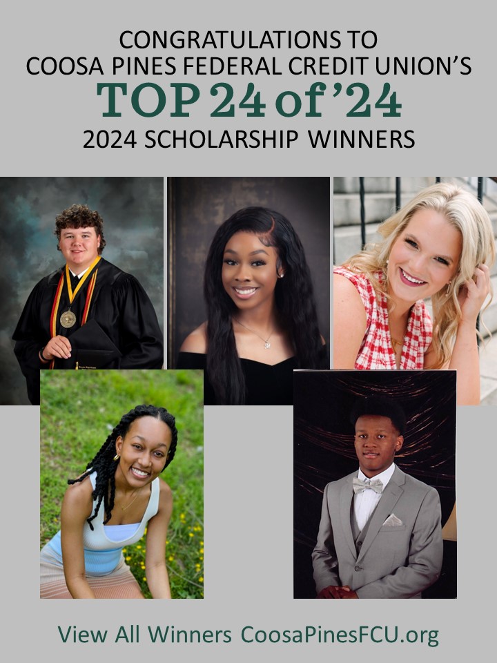 Coosa Pines has been awarding scholarships to deserving students for over a decade. Membership in the credit union is required but free for preschool through college students. It can be obtained at any branch or on the website CoosaPinesFCU.org by clicking the “Join Now” link.