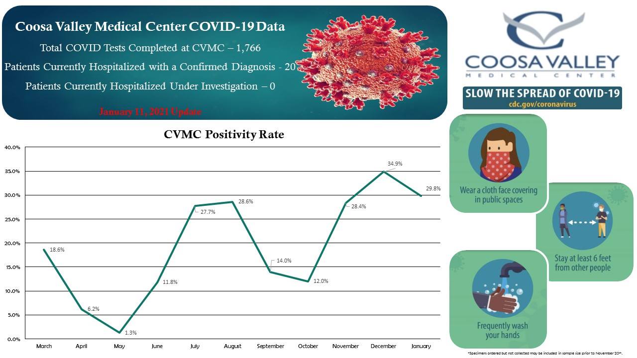 SYLACAUGA, Ala. – Coosa Valley Medical Center has updated its COVID-19 numbers.