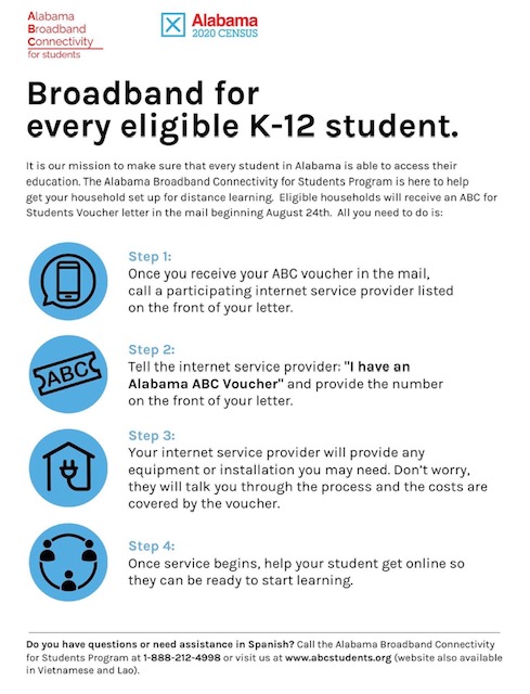 SYLACAUGA, Ala. – Students who receive free or reduced lunch, in Talladega County are eligible to receive free high-speed internet service through the Alabama Broadband Connectivity for Students Program.