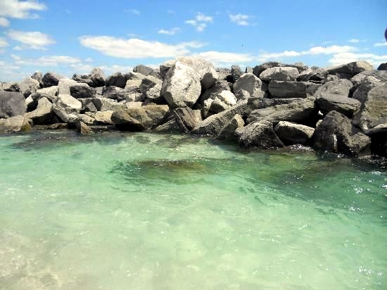 There you’ll see a very long row of huge boulders that block off strong ocean waves from the Jetty Beach. It’s a beach haven for families to swim and collect shells. The rocks are also a place where you’ll find a lot of people fishing on the Bay/Gulf side of the rocks.