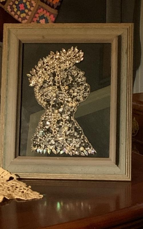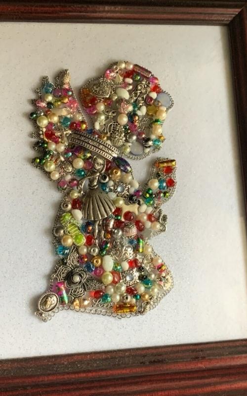 “I take and repurpose jewelry,” Green explained when asked about her artwork style. “I visit thrift stores and estate sales. I see necklaces and earrings and chains that are busted up, and I [create] with that.” She then models the jewelry to look like things such as angels, butterflies, or crosses.