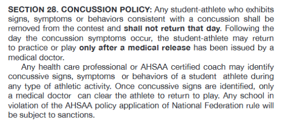 Below is the Alabama High School Athletic Association’s concussion policy.