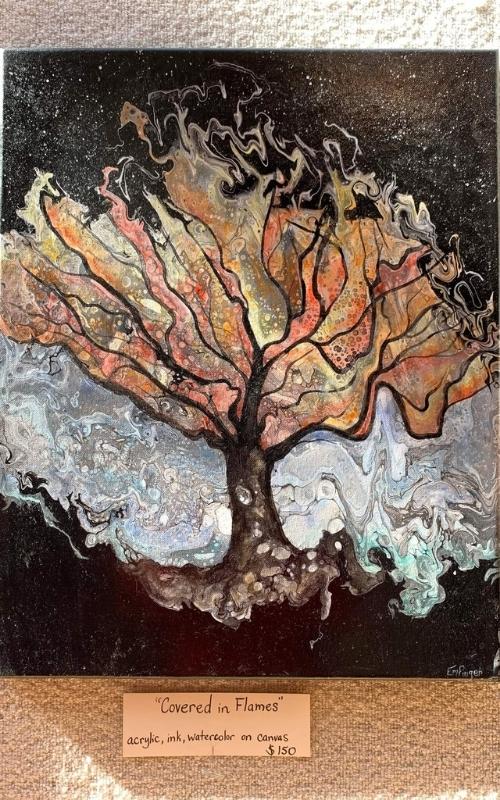 “Art of a Dreamer” is on exhibit until Feb. 28, 2022. A reception is planned for Emfinger on Feb. 17 from 6:30 p.m. to 8:00 p.m. Her paintings are priced from $50 to $400 and are available for purchase.