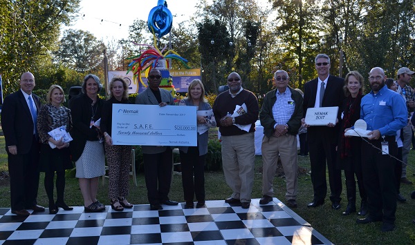 Over the last 20 years, SAFE has been committed to its mission, vision and values to empower and impact families and the community in order to foster the positive and healthy development of our youth, families, community, state and nation. To honor the organizations commitment to Sylacauga and the surrounding area, NEMAK, which is currently launching its first structural components, 4 piece battery housings for BMW, presented a check worth $20,000 to SAFE at the celebration.