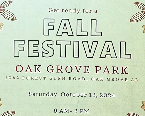 OAK GROVE, Ala. – The tradition dates back more than a decade, and the Town of Oak Grove is set for another family-friendly Fall Festival on Saturday, Oct. 12 from 9:00 a.m. until 2:00 p.m.