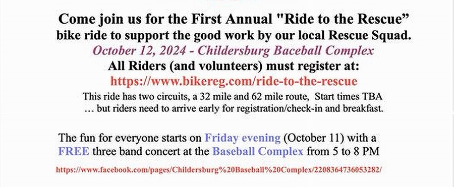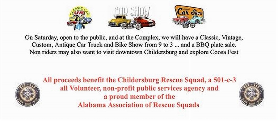 CHILDERSBURG, Ala. – As a fund-raising effort in support of their missions, locally and well beyond, the Childersburg Rescue Squad presents, “Ride to the Rescue” on Saturday, Oct. 12.