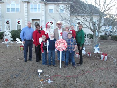 Receiving a Santa Stamp of Approval Award were Mr. and Mrs. Bobby Rogers, 2810 Arrowhead Drive; Kevin Whitman, 205 Milton Street; and Mr. and Mrs. Jason Gordon, 5 Rosemary Lane. Receiving a Santa Stamp of Approval sign for the commercial/industry division were Magnolias Gift Shop at 125 North Broadway Avenue and the Sylacauga Board of Education at 43 North Broadway Avenue.