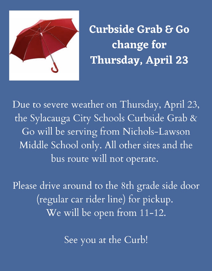 SYLACAUGA, Ala. – Predicted severe weather will change Sylacauga City Schools’ feeding program locations.