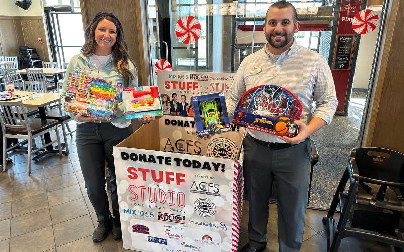 SYLACAUGA, Ala. – The seventh annual Stuff the Studio Food and Toy Drive has come to a close, and both Alabama Childhood Food Solutions (ACFS) and the Sylacauga Alliance for Family Enhancement (SAFE) are well-equipped to deliver Christmas cheer to those in need this holiday season.