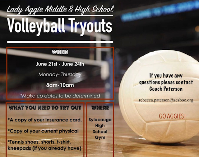 SYLACAUGA, Ala. – Sylacauga High School volleyball will hold tryouts next week for the 2021-2022 season.