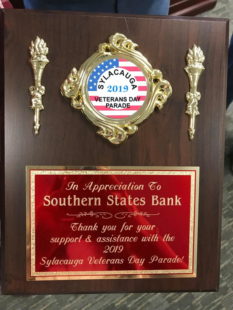 SYLACAUGA, Ala. – Southern States Bank’s Sylacauga branch was the recipient of an honor from American Legion Post 45 this week for its dedication to veterans and patriotism.