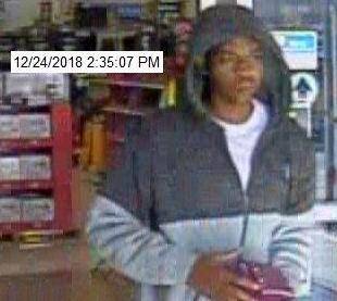 On Christmas Eve this male, wearing a two-toned gray jacket with a white t-shirt, was pictured exiting with a pink purse which was allegedly taken from an elderly lady’s shopping cart inside the Sylacauga Walmart.