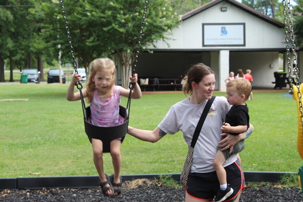 Afterwards, they scattered throughout the park to enjoy a bounce house, park swing sets and slides.