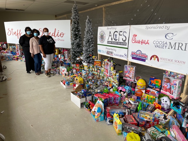 SYLACAUGA, Ala. – The 5th annual, award-winning Stuff the Studio Food & Toy Drive has officially come to a close. The annual drive benefits Alabama Childhood Food Solutions (AFCS) which distributes the food and the Sylacauga Alliance for Family Enhancement (SAFE) which distributes the toys.