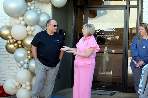 SYLACAUGA, Ala. – The Thursday morning, April 10, combination of a Sylacauga Chamber of Commerce Connections event, a ribbon-cutting ceremony, and the hospitality of Coosa Valley Medical Center’s Hickory Street Cafe created a fabulous welcome to Dr. Juan Campos’s “Bella at the Valley” Center for Cosmetic Surgery.