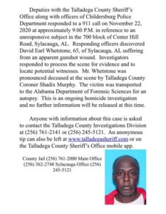 SYLACAUGA, Ala. – A 65-year-old man was shot and killed Sunday night according to a Facebook post on Talladega County Sheriff’s Office Facebook Page.