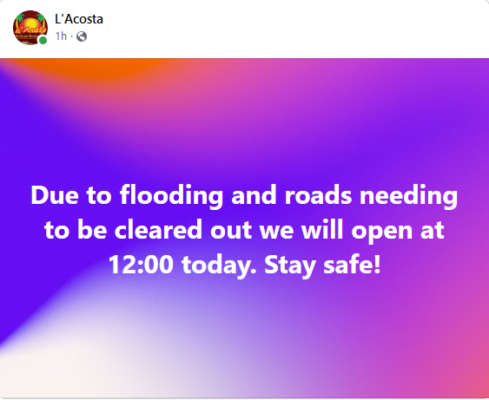 Due to the water making its way into buildings and the travel issues caused by the heavy rainfall, a number of businesses, especially those located in or around downtown Sylacauga, have either cancelled operations for the day or postponed their openings until this afternoon.