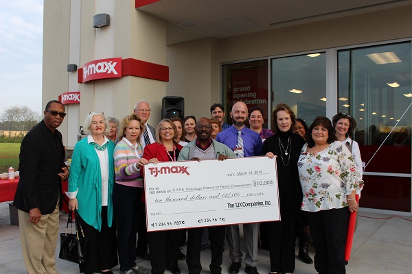 Before T.J. Maxx opened as the first store in the new Marble City Square shopping center, it celebrated with a ribbon cutting ceremony. As hundreds patiently waited along the outside wall of the 18,000 sq. ft. facility, T.J. Maxx manager Shane Cash presented a $10,000 check to the Sylacauga Alliance for Family Enhancement (SAFE). This is the second large donation SAFE has received in the last few months. In November, Nemak donated $20,000 to the community outreach organization.