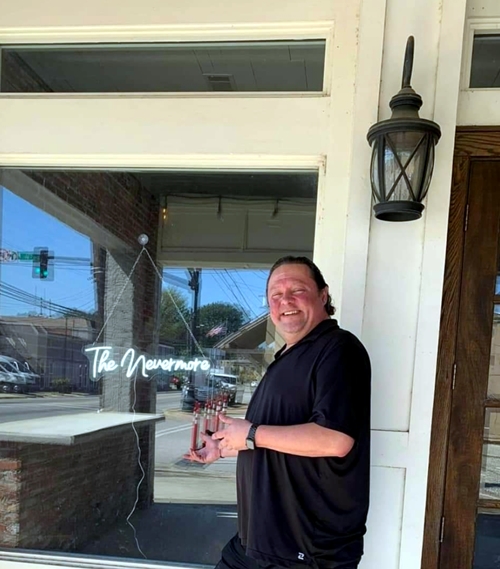 CHILDERSBURG, Ala. – Aaron Campbell is chasing a dream, adding a progression of new business establishments on 8th Ave. SW in downtown Childersburg. First up will be Aaron’s own bar and grill “The Nevermore” in the former Cuppa Grace building.