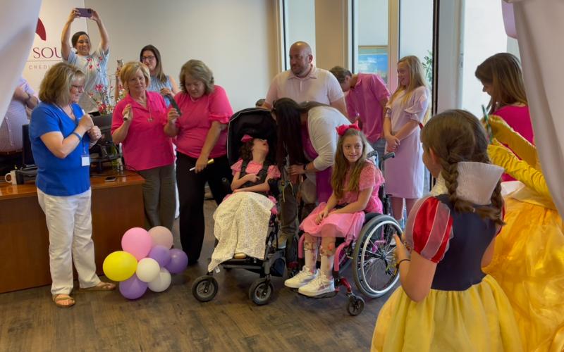 SYLACAUGA, Ala. – Heritage South Credit Union rolled out the red carpet for a heartwarming send-off celebration on Wednesday afternoon, May 22, as two identical twins from Sylacauga prepared to head on a dream vacation to Disney World, courtesy of the Make-A-Wish Foundation.