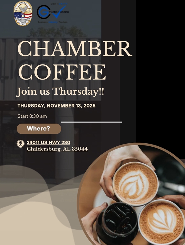 CHILDERSBURG, Ala. – Normally on the Monday before the month’s second Tuesday, a reminder will be posted for the Greater Coosa Valley Chamber of Commerce Coffee that would take place tomorrow, but this month, it’s different.