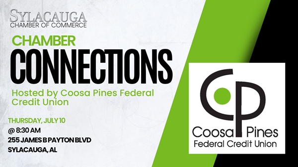 You’ll want to attend the Sylacauga Chamber Connections event on Thursday, July 10 at 8:30 a.m., when the James Payton Blvd. branch of Coosa Pines Federal Credit Union hosts the monthly event.