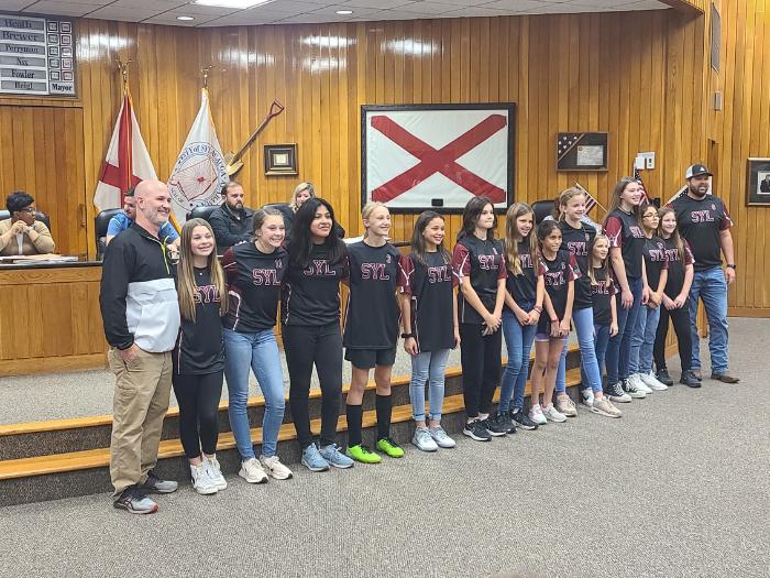SYLACAUGA, Ala. – At the Sylacauga City Council meeting Tuesday night, Dec. 6, two girls’ teams and one boys’ squad were honored for their championship seasons.
