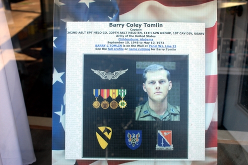 The City of Childersburg has eight downtown window displays of a Fallen Soldier‘s Table to honor eight brave Talladega County men who never made it home. They died in battle for our freedom, and the Fallen Soldier’s Table highlights the distinct difference between Memorial Day and Veteran’s Day in November.