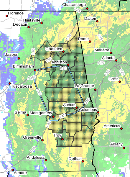 Oneonta to Sylacauga to Montgomery to Troy. Conditions will gradually