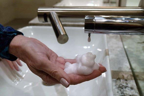 A: It doesn’t. Actually, what removes the germs when you wash your hands is the friction you create by rubbing your hands together and creating a lather, removing microbes from the skin. This is why covering all surfaces of your hands and scrubbing for 20 seconds is so important. I would not recommend using hot water because it actually contributes to the dryness of your skin.