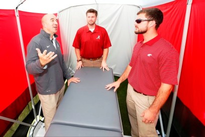 Allen said his original intention was for the students to create a tent his staff could use for Crimson Tide football games. The finished product turned out to work so well that first season it garnered the attention of the media and the sports medicine and training community. Being on the sideline of a visible football team and flagship university helped, he said.
