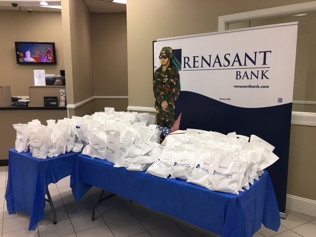 The program, administered through the American Red Cross, provides essential personal care items like soap, toothpaste, shaving cream, and more to veterans in need. This year, Renasant Bank partnered with the American Red Cross to give back to the heroes who have sacrificed so much for the United States.