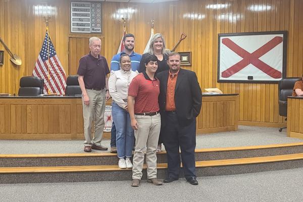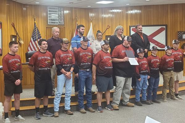 Before the agenda was addressed, the Talladega County 4-H Shotgun Team plus Sylacauga High School javelin thrower Bryant Waters were recognized for their recent state championship wins.