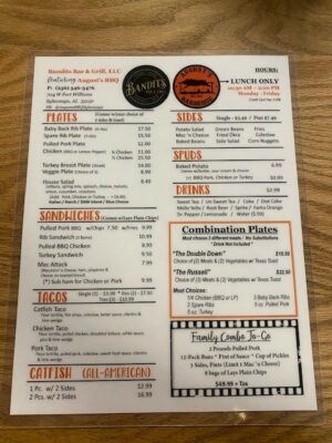 Sharing the same location as Bandit’s Bar & Grill, August’s operates throughout the week during the lunch hours of 10:30 a.m. to 2:00 p.m.
