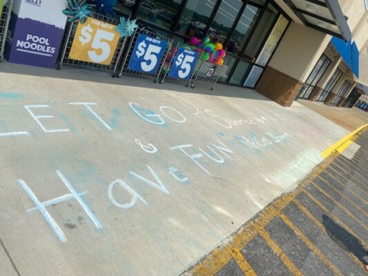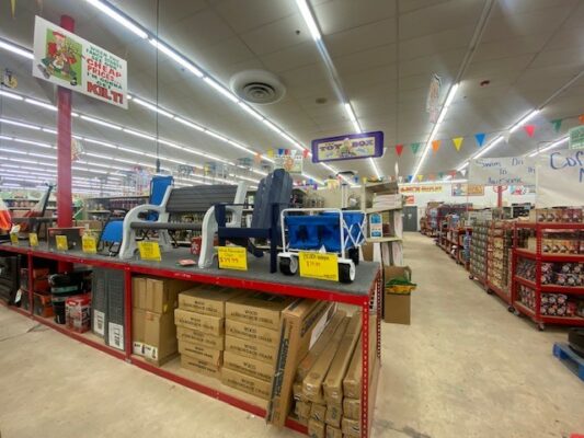 After stuffing their faces with chicken, fried okra, and corn nuggets, Katie and Jada decided to visit all of the dollar stores in town and see what they could stuff Katie’s office with. The first stop: Dirt Cheap.