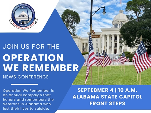 MONTGOMERY, Ala. – The Alabama Department of Veterans Affairs (ADVA) formally announced their 2024 campaign, “Operation We Remember,” at a news conference at the Alabama State Capitol on Wednesday, Sept. 4.