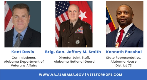 Wednesday’s news conference featured ADVA Commissioner Kent Davis, Alabama National Guard Brig. Gen. Jeffery M. Smith, and Alabama State Representative Kenneth Paschal, who each provided information and insight into efforts of their respective organizations and how those efforts are positively impacting Alabama’s Veterans suicide rate.